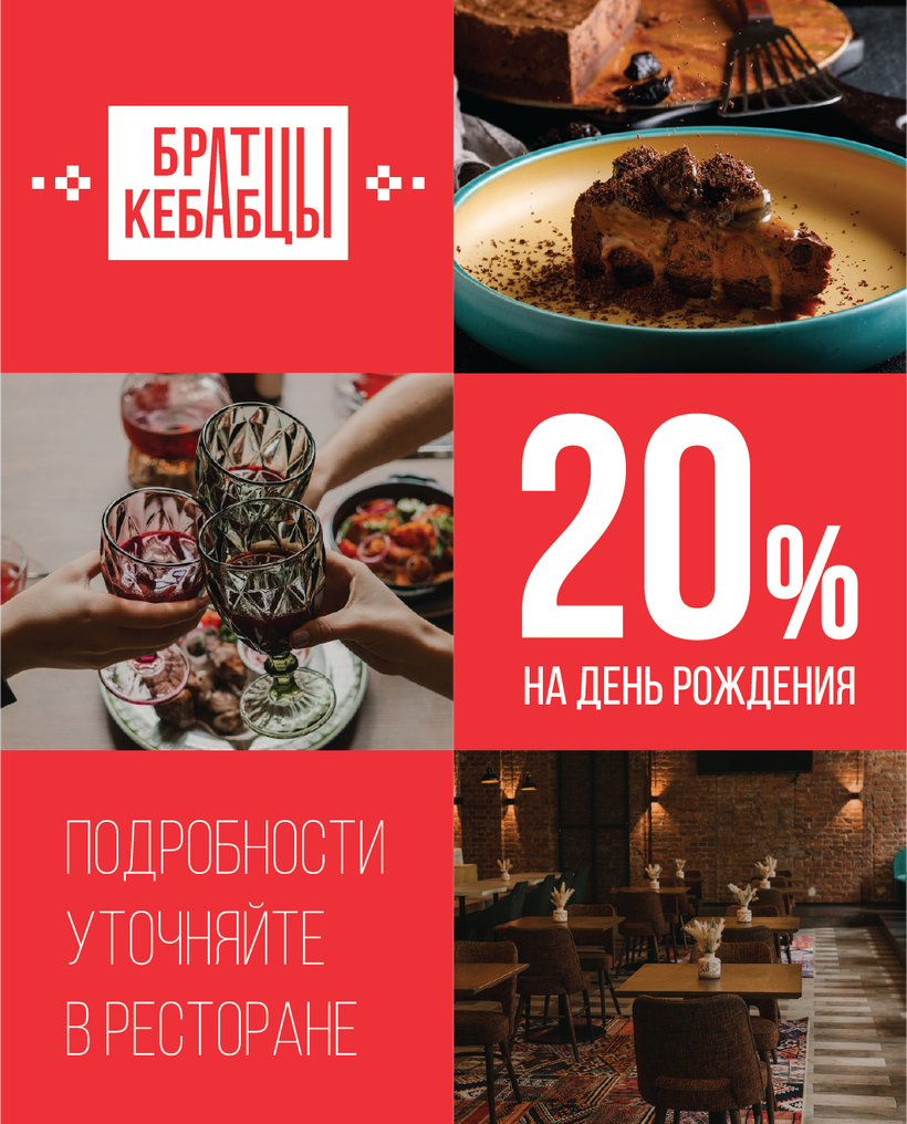 "Братцы Кебабцы" - рестораны сербской кухни с питерским акцентом. Главное для нас - никто не должен быть голодным, поэтому блюда сытные и разнообразные. Хэдлайнер нашего меню - мясо, много мяса. Но мы не забыли и про популярные классические позиции, ведь каждый должен найти для себя вариант по вкусу.